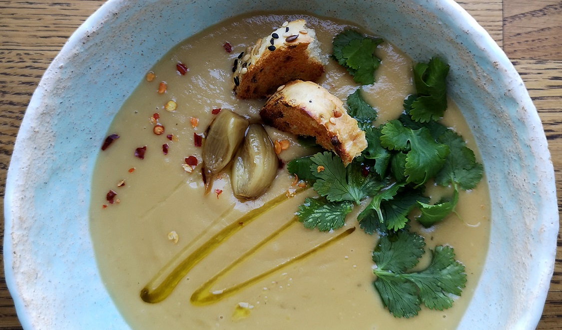 Подавайте з листочками кінзи або іншою улюбленою вами зеленню, печеним часником, грінками та кількома краплями доброї олії.
